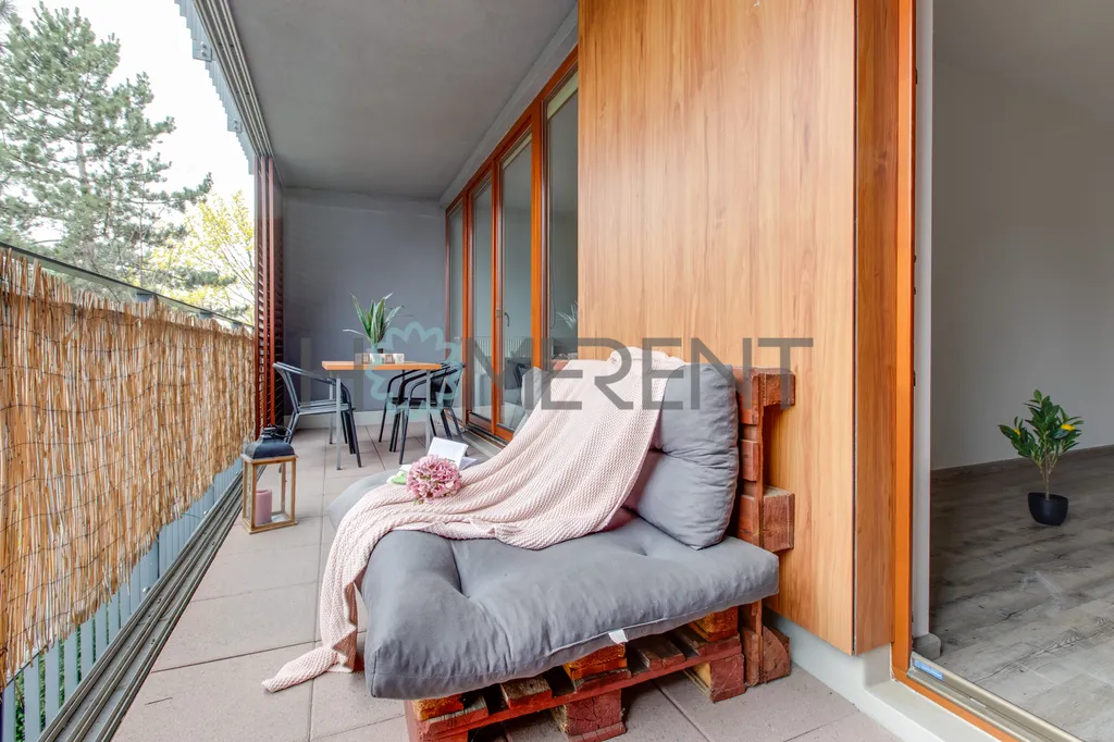 Byt se nachází ve 2. nadzemním podlaží moderního bytového domu s výtahem a nabízí podlahovou plochu 109 m². K bytu dále náleží balkon o velikosti 12 m², takže celková užitná plocha činí 121 m². Součástí pronájmu jsou také dvě parkovací stání, což výrazně zvyšuje komfort každodenního bydlení.