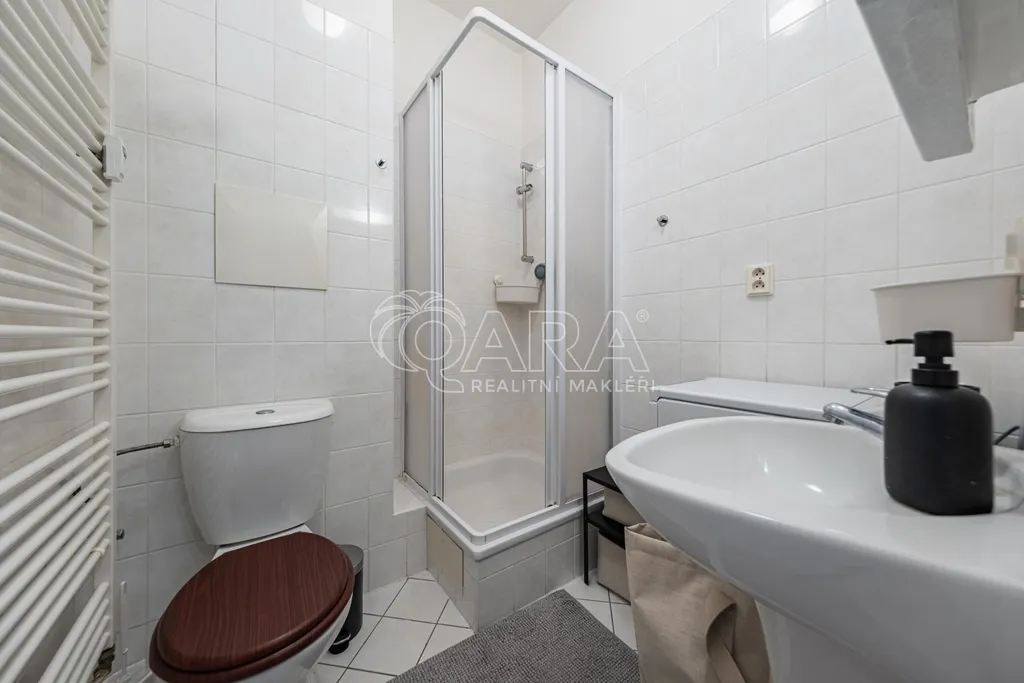 Byt se nachází v novostavbě v 1. podlaží dobře udržovaného domu a nabízí praktické dispoziční řešení hlavní obytná místnost s kuchyňským koutem poskytuje dostatek prostoru pro pohodlné bydlení. Z pokoje je vstup na balkon, který je ideálním místem pro ranní kávu či relaxaci. V předsíni se nachází velká vestavěná zrcadlová skříň na míru, která nabízí dostatek úložného prostoru. Koupelna je vybavena sprchovým koutem, pračkou a umyvadlem, toaleta je součástí koupelny.