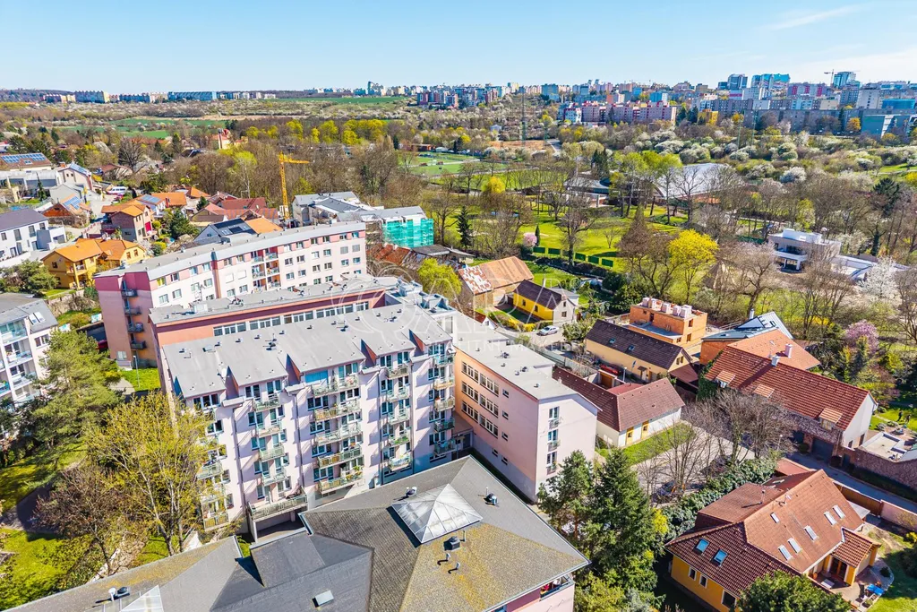 Velmi dobrá dostupnost MHD v docházkové vzdálenosti zastávky autobusů (101, 106, 138, 154, 188, 195) a tramvaj (22, 26). Rychlé spojení na metro A (Strašnická/Skalka cca 1015 min) i C (Kačerov cca 1520 min). Dobré napojení autem na Jižní spojku.