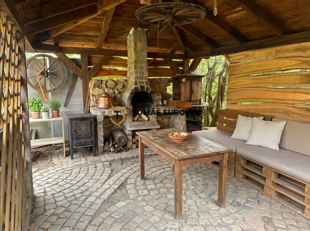 Na pozemku se nachází chata, která je dispozičně řešena jako obývací prostor v přízemí a podkrovní část určená ke spaní. Interiér působí příjemně a poskytuje vše potřebné pro víkendové pobyty i delší únik z každodenního shonu. Atmosféru dokresluje venkovní posezení s krbem, které přímo vybízí k relaxaci, grilování a trávení času s rodinou či přáteli.