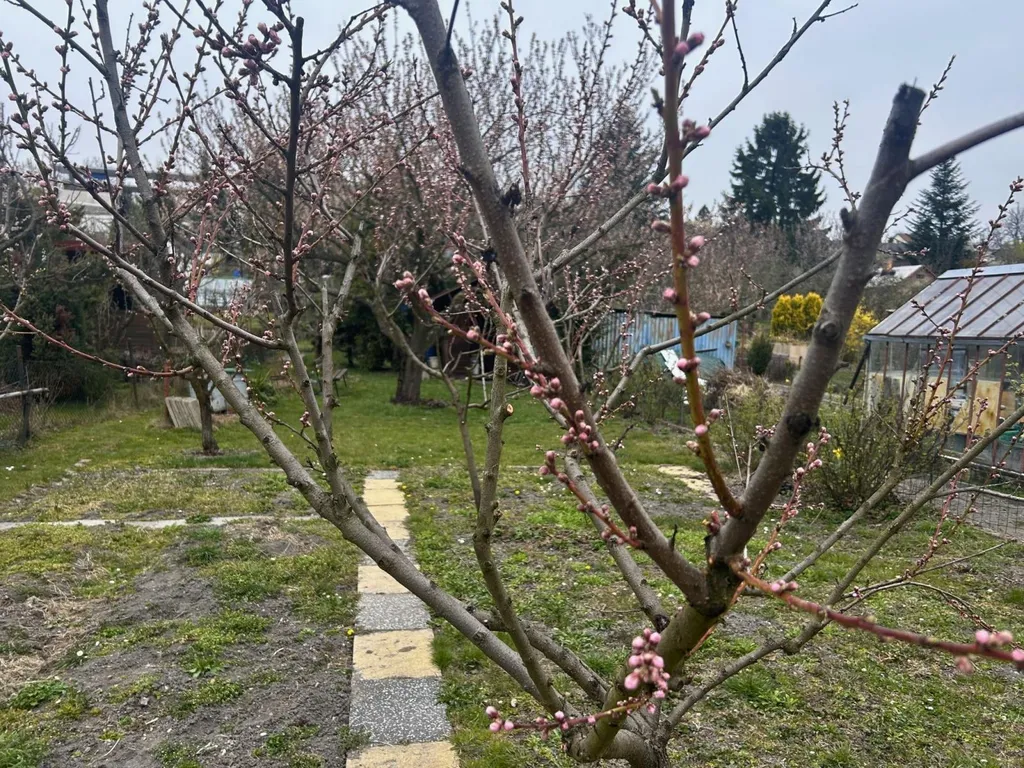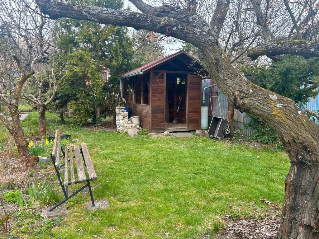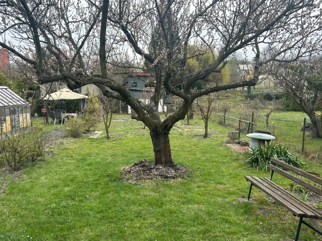 Zahrada je rovinatá, oplocená a připravená jak pro pěstování, tak pro odpočinek. Nachází se zde připravené záhony, plodící ovocné stromy a bobuloviny, místo k posezení a také nová dřevěná kůlna.
