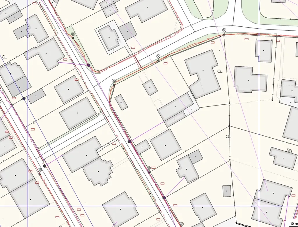 Inženýrské sítě na hranici pozemku, elektřina, vodovod, kanalizace.