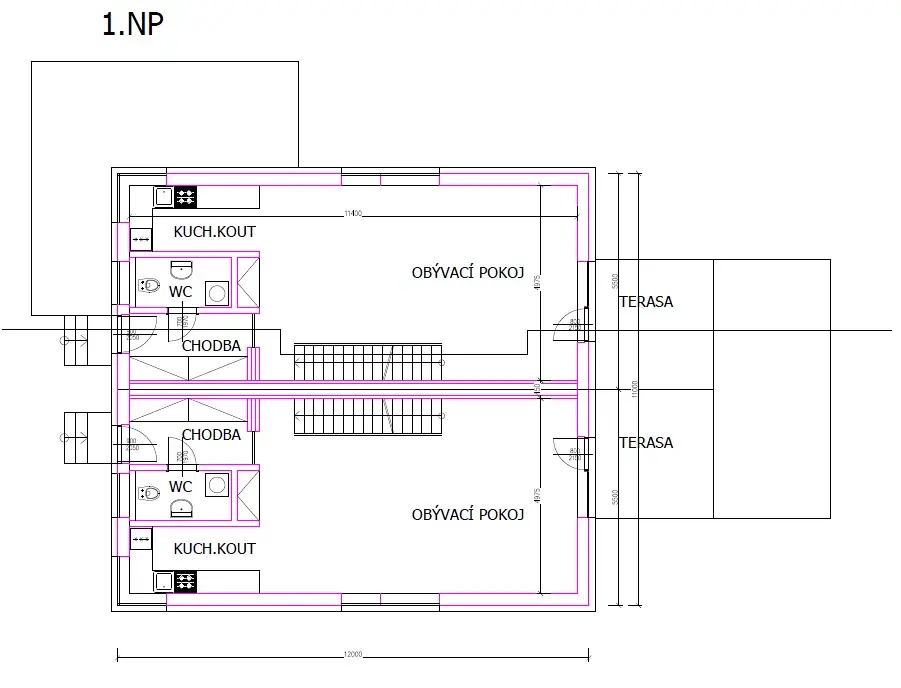 Momentálně projektant aktivně řeší návrh na stavební povolení, které obsahuje stavbu nemovitosti o dvou bytových jednotkách s garáží a terasou.