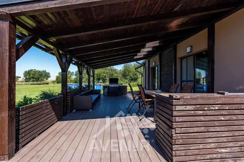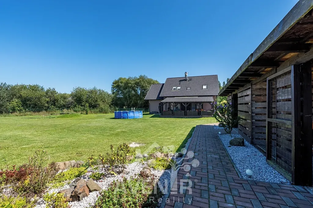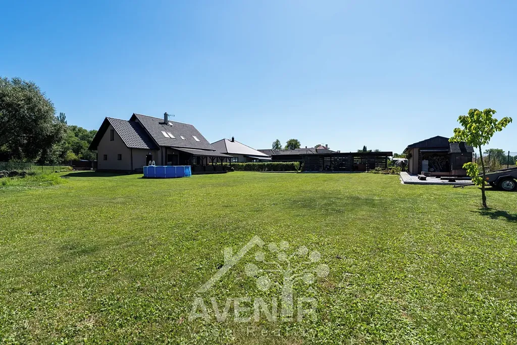 Dům má dvě koupelny, garáž a možnost parkování pro další auta na pozemku. Na zahradě najdete velkou pergolu s výhledem na celý pozemek a prostorný zahradní domek. Celý dům je oplocený, což vám zaručí soukromí a klid.