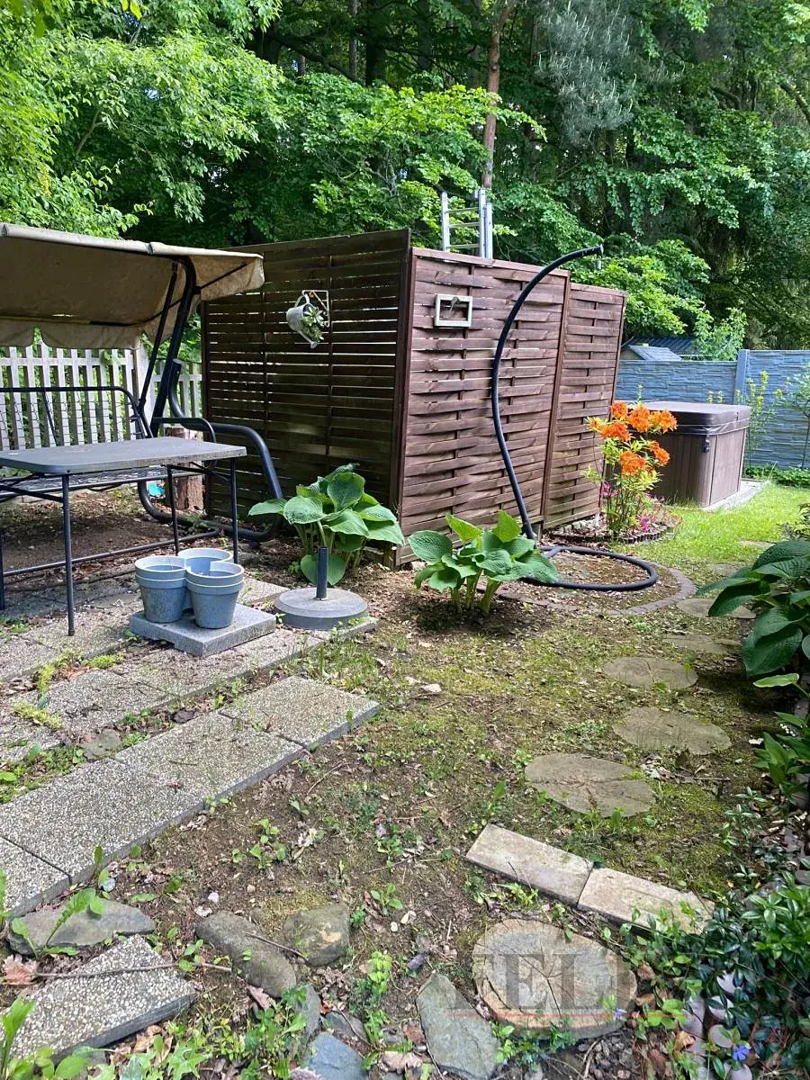 Celková výměra pozemku činí 400m2. V přízemí je umístěna zastřešená terasa se zádveřím, obývací pokoj s krbem, vybavená kuchyně a sociální zázemí. V poschodí 3 neprůchozí ložnice.
