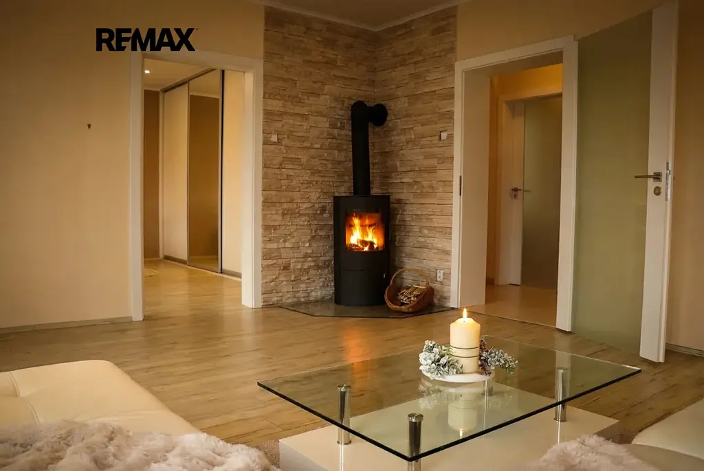 • Srdce bytu s živým ohněm: Dominantou obývacího pokoje jsou krbová kamna, které prohřejí skoro celý byt a vytvoří atmosféru, kterou u běžných pronájmů prostě nenajdete.