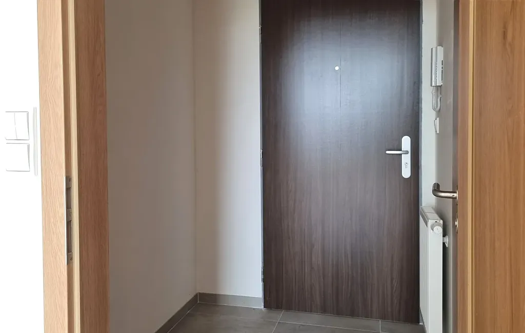 Praktický byt o uspořádání 3+kk je umístěn ve 6. nadzemním podlaží bytového domu, zkolaudovaného v r. 2023. Dům stojí na nároží ulic Jaselská a Jiřího z Poděbrad v Hranicích a vzniklo v něm 70 bytů, a také garážová stání i samostatné garáže. Užitná plocha bytu je 45 m2 a k tomu navíc balkon o ploše 8 m2. Obytný pokoj s kuchyňským koutem zaujímá plochu 21 m2, ložnice plochu po 9 m2 a pokojík 7 m2. Obývací pokoj s balkonem a ložnice jsou orientovány západně, pokojík je orientován severním směrem, do vnitrobloku. Koupelna, společná s WC, je vybavena sprchovým koutem a je v ní i příprava na pračku. Za výhodnou cenu lze přikoupit sklep.