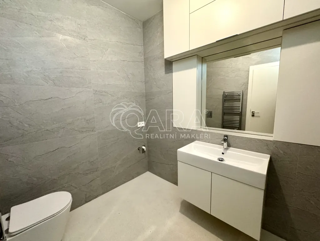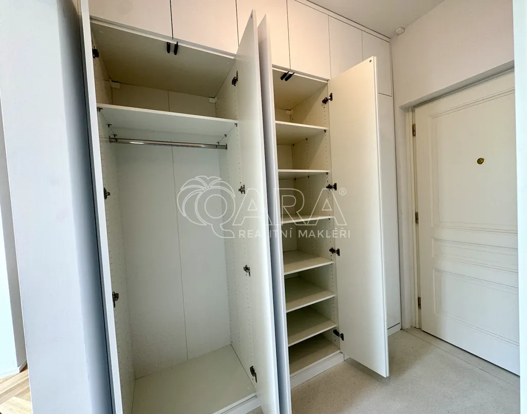 Tento světlý, vzdušný byt (56 m2) se nachází ve V. nadzemním podlaží domu bez výtahu, ale tato drobná nevýhoda je vyvážena jeho skvělou polohou a příjemným prostředím. Jednotka disponuje také klimatizací. Dispozice bytu je velmi praktická a prostorná. Vstupní místnost s vestavnými skříněmi nabízí dostatek úložného prostoru. Velká obytná místnost slouží jako ložnice a zároveň jako obývací pokoj, ve kterém se nachází moderní a plně vybavená kuchyňská linka. Ta obsahuje lednici, mrazák, sporák, troubu, myčku a digestoř. Samozřejmostí je i koupelna se sprchovým koutem, umyvadlem, toaletou a přípojkou na pračku se sušičkou. Z bytu je naprosto nádherný výhled do zahrady Kinských. K jednotce je možné pronajmout parkovací stání ve dvoře.