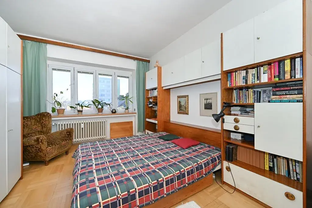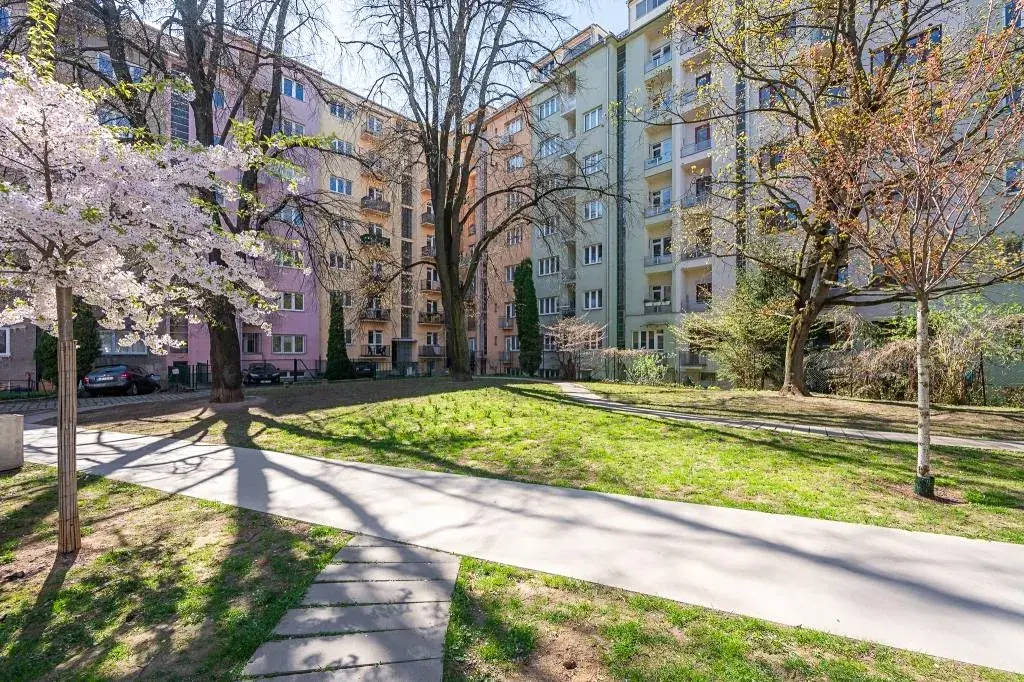 Velké samostatné pokoje s obývacím pokojem na západní stranu a ložnicí do vnitrobloku na východní stranu s výhledem do parku, kde vás ráno bude budit sluníčko.