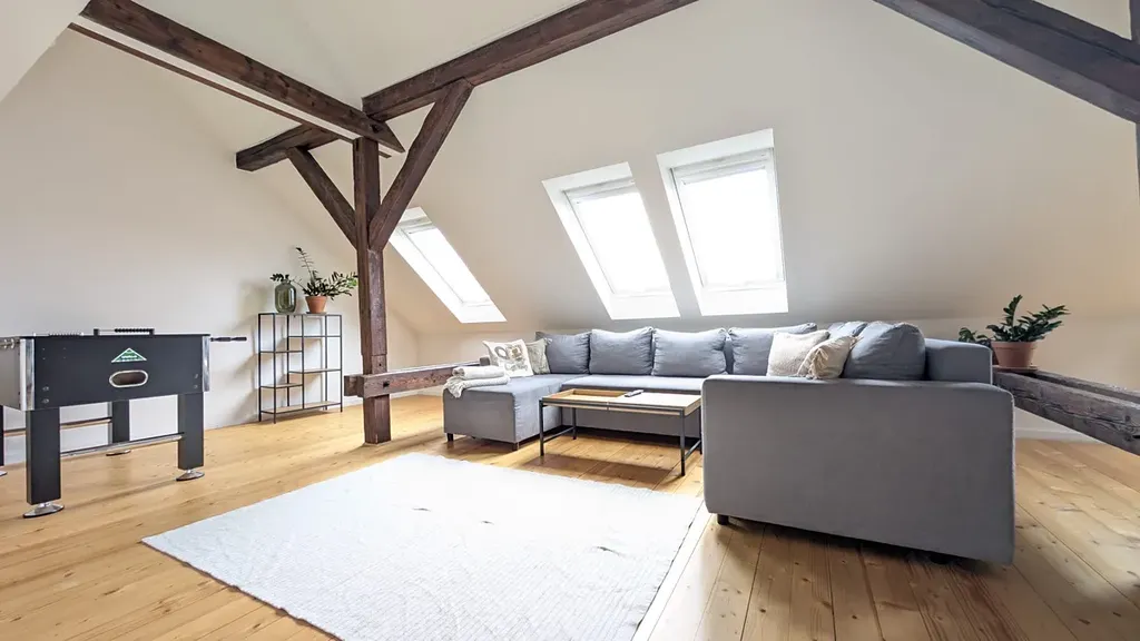 Prostor je řádně zkolaudován pro bytové využití. V současné době probíhá administrativní proces rozdělení původní bytové jednotky na dvě samostatné bytové jednotky, přičemž předmětem prodeje je jedna z nich. Parkování je možné v rámci rezidentní modré zóny v okolí domu.