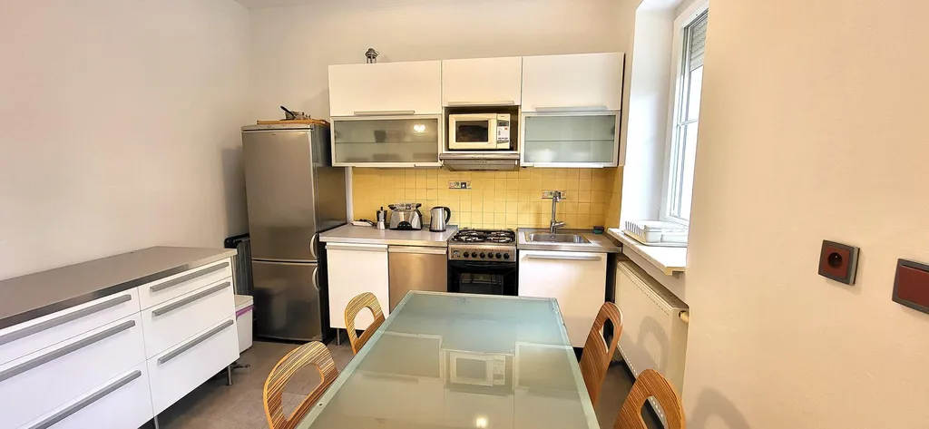 - kuchyně vč. spotřebičů plynový sporák s troubou, digestoř, MT, rychlovarná konvice, lednice s mrazákem, jídelní stůl + 4 židle;