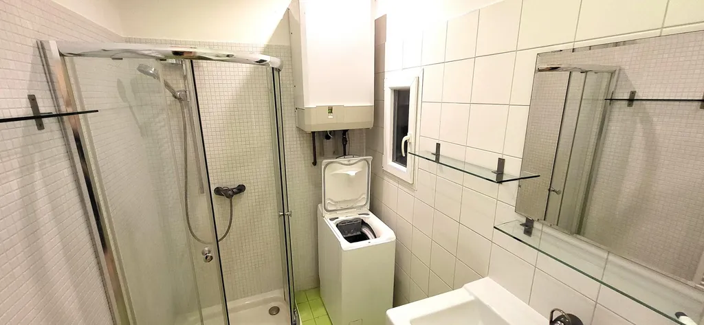 Koupelna je se sprchovým koutem a umyvadlem, vč. pračky, WC samostatné.