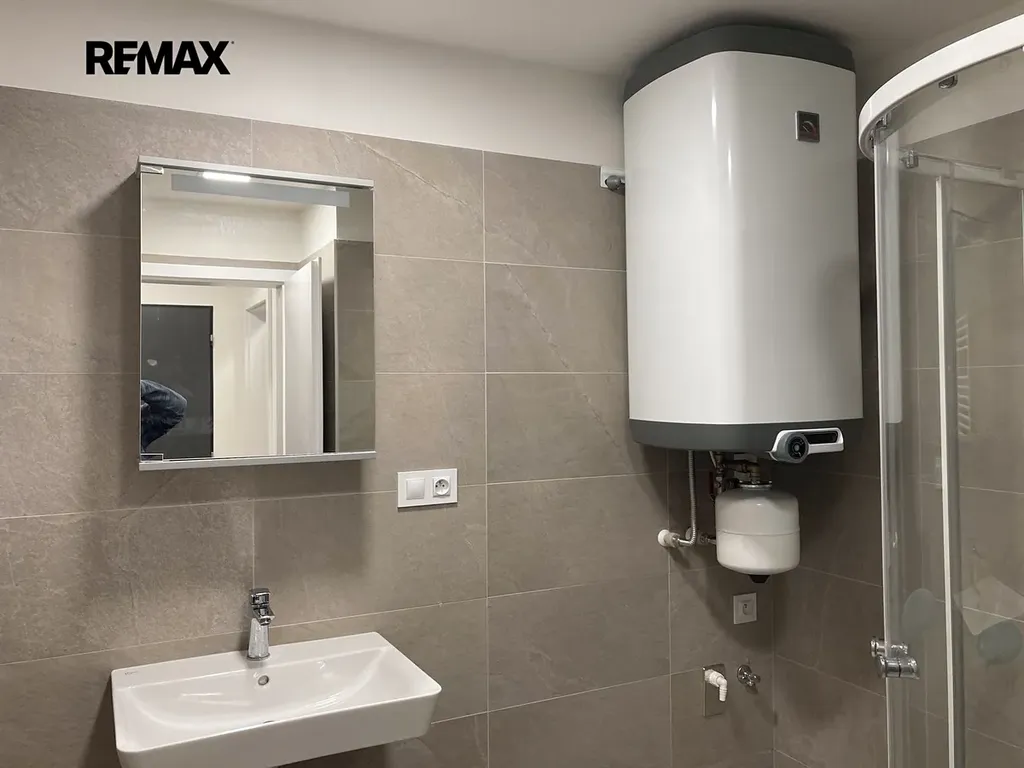 Koupelna je vybavena sprchovým koutem, umyvadlem, zrcadlovou skříňkou, topným žebříkem a bojlerem na ohřev TUV, WC je samostatné. V zádveří je věšák s botníkem a zrcadlem. Byt má elektrické úsporné podlahové vytápění s vlastní regulací v každé místnosti a elektricky ovládané venkovní žaluzie. Dům má společnou TV anténu, kabelovou televizi, internet. Výhled z bytu je orientován do zeleně (směrem k potoku a sousedícímu domu na Komenského, nikoli do ulice).