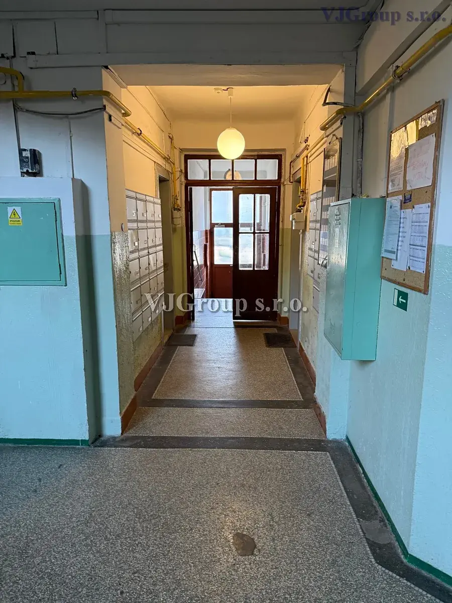 Byt v osobním vlastnictví je situován ve 4. patře pětipatrového domu s výtahem. Dispozičně je byt řešen jako 2+1 + předsíň, obytná plocha bytu činí 69 m² + sklepní kóje, jejíž výměra není zahrnuta v celkové výměře bytu. Byt sestává z větší předsíně, obývacího pokoje, prostorné ložnice, samostatné kuchyně s jídelnou a samostatnou spíží, koupelny s vanou a umyvadlem a samostatné toalety v předsíni. V koupelně i na WC jsou provedena okna do světlíku. Oba pokoje mají samostatné vchody z předsíně a zároveň jsou vzájemně propojeny aktuálně nepoužívanými spojovacími dveřmi. Vstupní dveře do bytu jsou bezpečnostní.