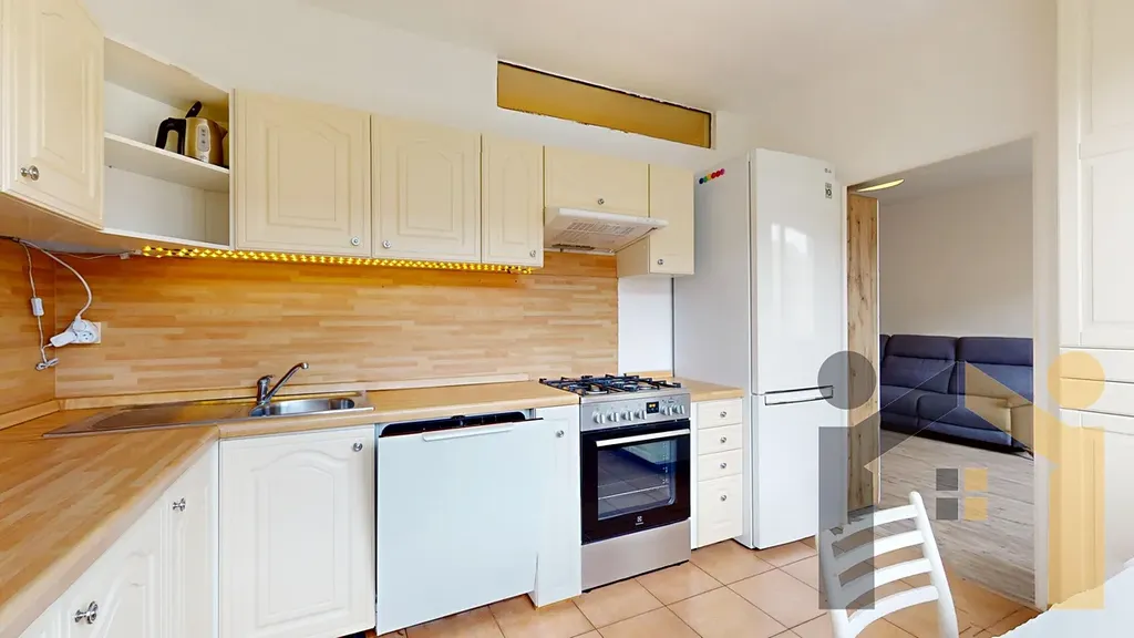 Ve velmi příjemné lokalitě s perfektní občanskou vybaveností v okolí nabízíme dlouhodobý pronájem příjemného a světlého bytu 3+1 s lodžií v 5.NP (4. patro), se sklepem. Byt se nachází v zatepleném panelovém bytovém domě v ulici Rabyňská, Praha 12, Kamýk.