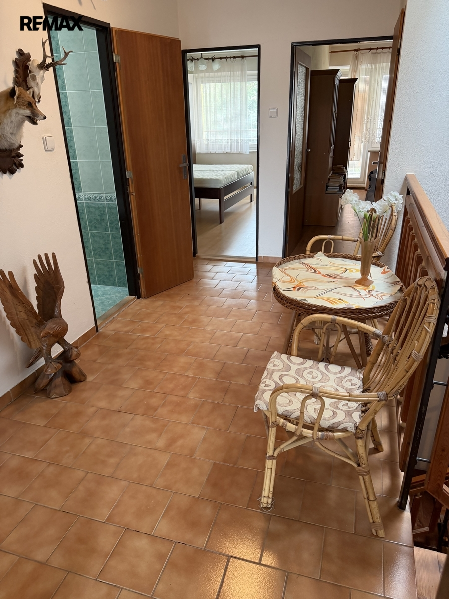 Součástí domu je prostorná garáž, prádelna, dílna a další užitné prostory, které zajišťují vysoký komfort a variabilitu využití. Kuchyně je vybavena kuchyňskou linkou včetně spotřebičů.