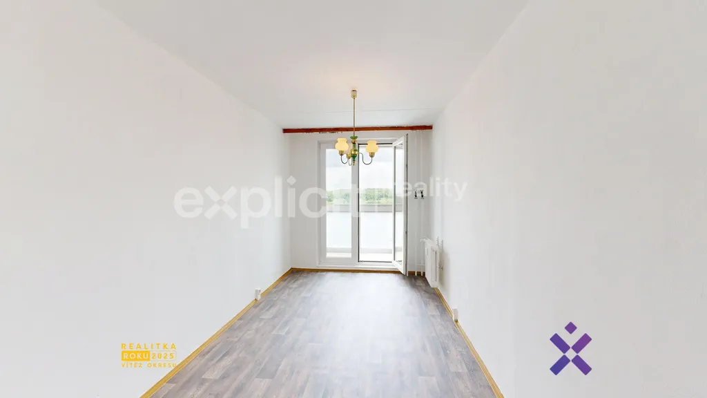 Byt se nachází v 6. nadzemním podlaží panelového domu s výtahem a je připravený k okamžitému nastěhování. Dispozičně je rozdělen na tři obytné místnosti, kuchyni, koupelnu a samostatné WC.