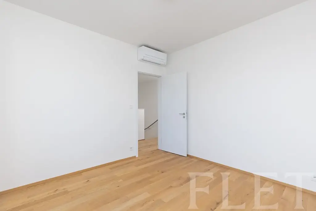 Dům je rozdělen na technickou část s garáží pro dvě auta, společenskou část a klidovou obytnou zónu. Ve všech pokojích je položena kvalitní dřevěná podlaha, která podtrhuje celkový elegantní dojem. Srdcem domu je prostorná a moderní kuchyně značky Hanák s ostrůvkem, plně vybavená pro každodenní vaření i setkávání s rodinou či přáteli. Na ni navazuje obývací část s přímým vstupem na zahradu, která nabízí dostatek prostoru pro venkovní posezení, pěstování bylinek nebo třeba menší bazének pro letní osvěžení. Díky automatické závlaze je péče o zahradu téměř bez starostí. V obytné části se nachází dva pokoje, z nichž jeden může sloužit jako ložnice s přímým vstupem na terasu. Dům disponuje dvěma koupelnami – ve společenské části najdete sprchový kout, zatímco v obytné části si můžete dopřát relaxační koupel ve vaně. Velká okna a francouzské dveře zajišťují dostatek denního světla, zatímco klimatizace ve všech pokojích garantuje příjemné klima i během horkých letních dnů.