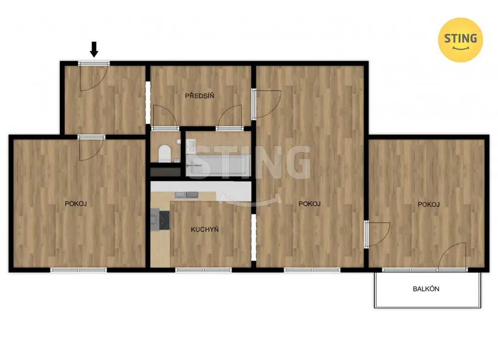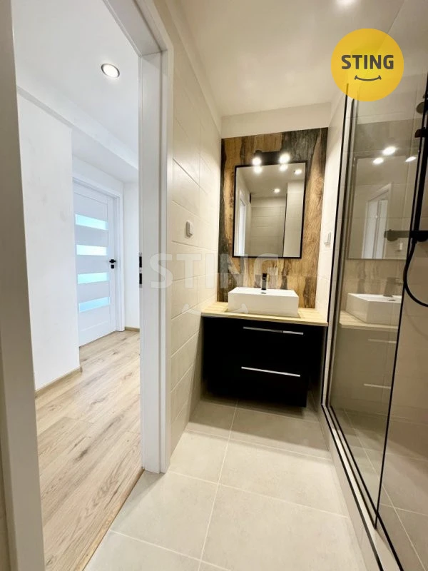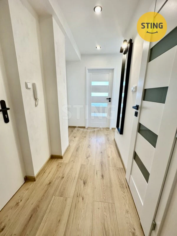 Byt sestává z otevřeného prostoru obýváku a kuchyňského koutu, samostatných dalších 2 pokojů, koupelny s WC a chodby. Je po rekonstrukci vč. rozvodů elektroinstalace, jističů, vody, odpadů, omítek, podlahových krytin, interiérových i vstupních dveří atd.
