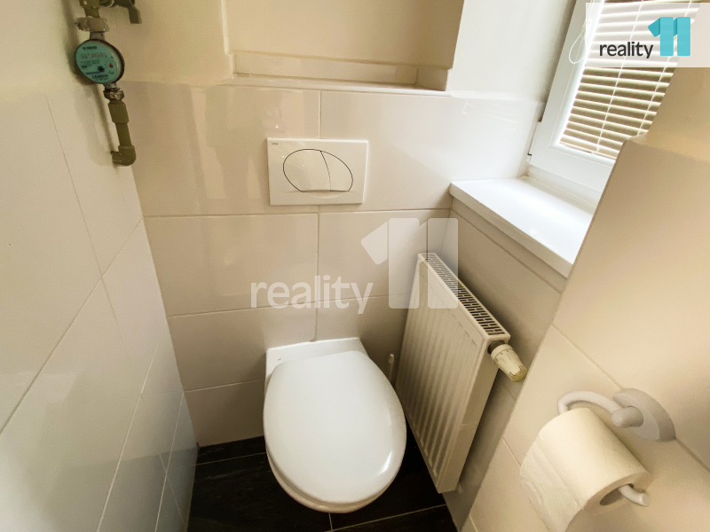 Dispozice bytu: kuchyně se spíží na potraviny a prostorem pro jídelní stůl, z kuchyně je vstup do obývacího pokoje a z něj dále do ložnice (pokoje jsou průchozí). Okna z obývacího pokoje a ložnice jsou orientována do klidného vnitrobloku. V předsíni je výklenek vhodný pro šatní skříň a vstup do koupelny a na samostatné WC. Součástí pronájmu je také prostorná zděná sklepní kóje v suterénu domu.