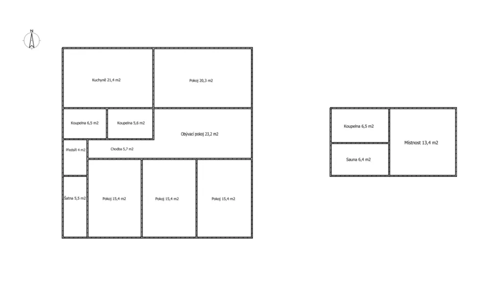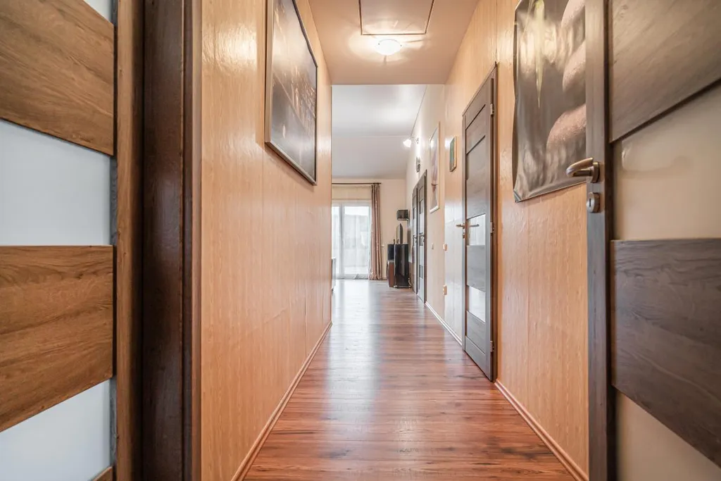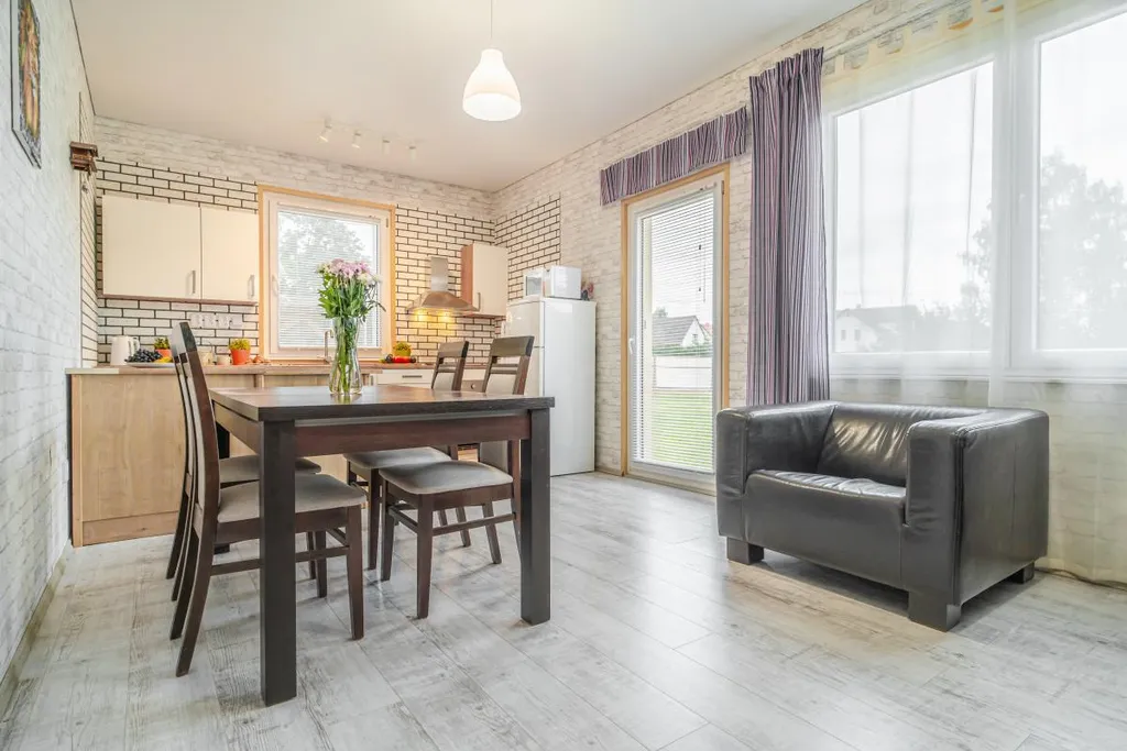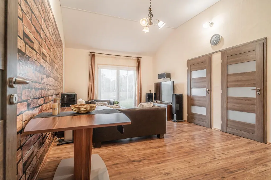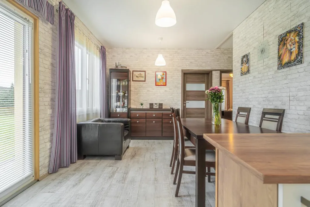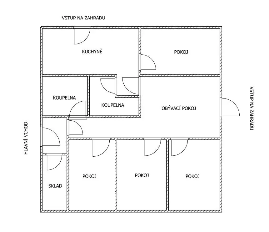 Dispozice domu nabízí pohodlné rodinné bydlení. Po vstupu do domu se nachází vstupní chodba, ze které je přístup do technické místnosti a dále do hlavní obytné části. K dispozici jsou čtyři samostatné pokoje, dvě koupelny a kuchyně s jídelním koutem. Na zahradu je vstup jak z kuchyně, tak z obývacího pokoje.