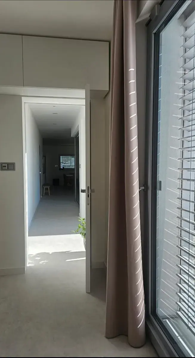 Interiér tvoří na míru vyrobený designový nábytek,dveře se skrytou zárubní značky Dorsis, velkoformátová zrcadla v jednotlivých místnostech.