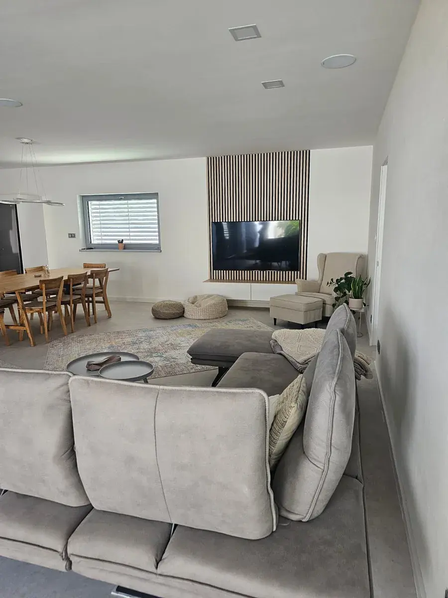 Náročnost bydlení zajišťuje automatický vysavač s dokovací stanicí Roomba Combo, prostorové ozvučení uvnitř i z venku a inteligentní prací sestava LG.