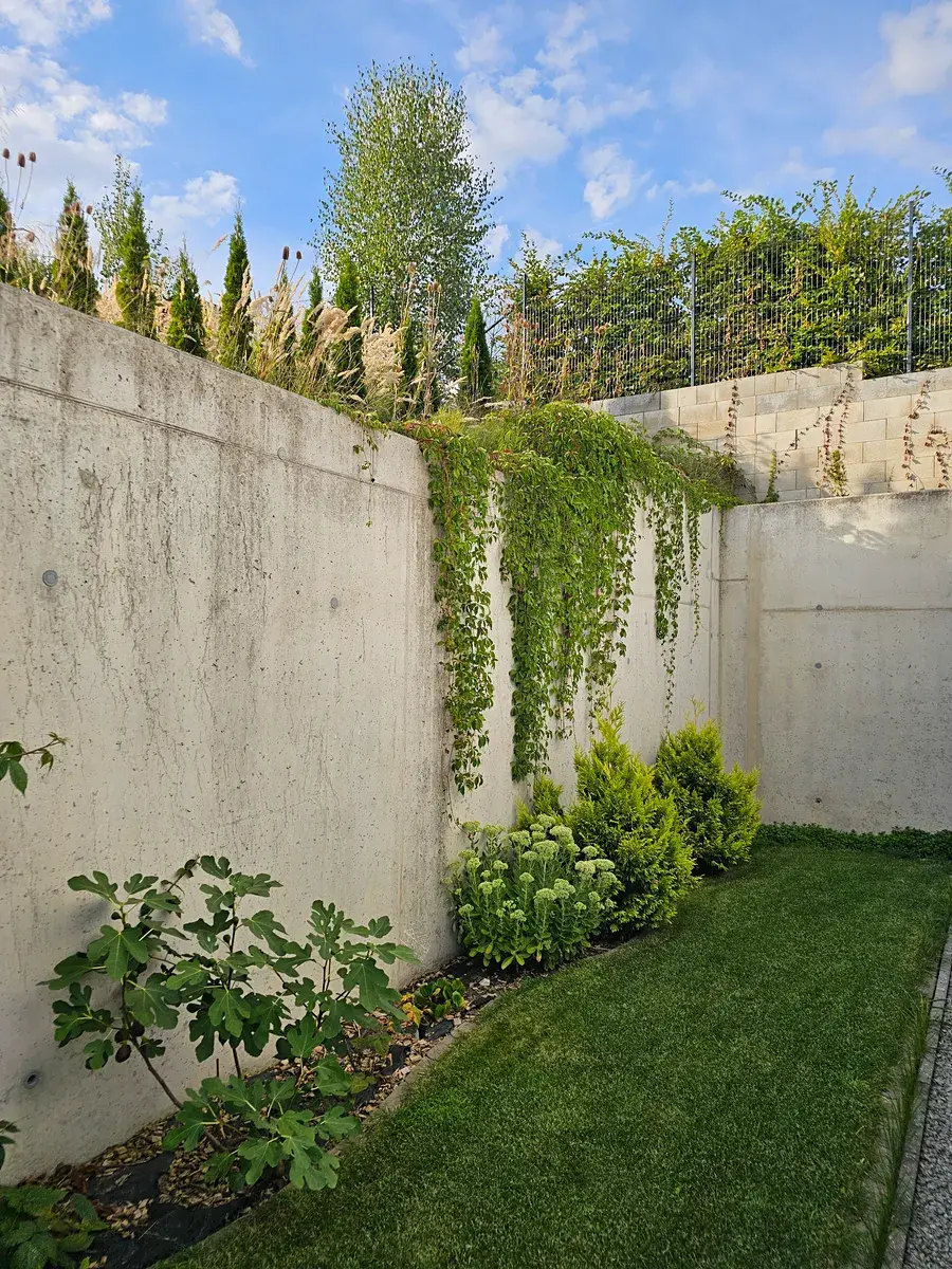 O údržbu trávníku na zahradě se stará automatická sekačka.