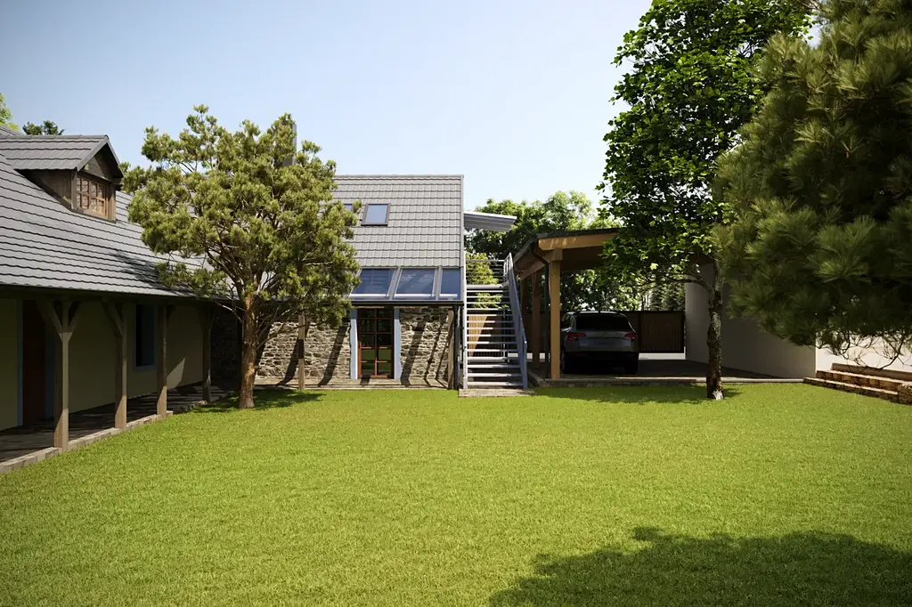 Pozemky příslušící k nemovitosti jsou upraveny a zároveň je o ně bezúdržbově postaráno automatickou sekačkou Husqvarna, která je určena až na 5 tis.m² plochy. Další exkluzivitou, která patří k domu je obytná, vybavená maringotka s možností celoročního užívání.