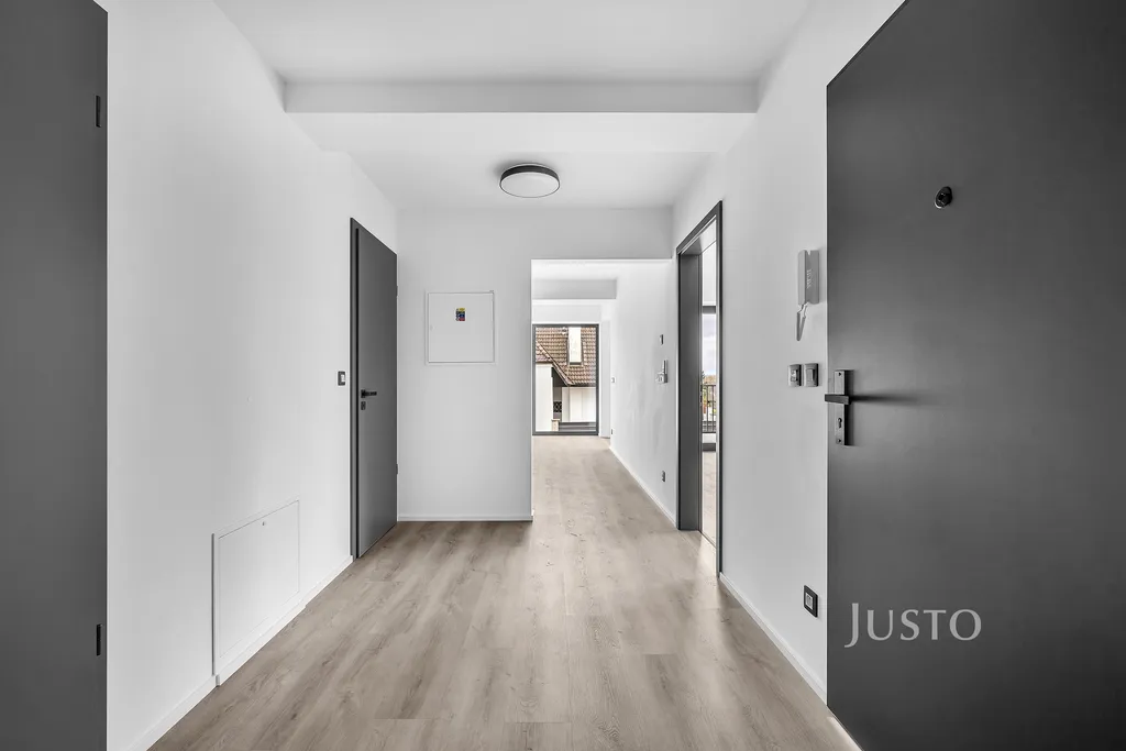 Nabízíme k pronájmu prostorný byt 3+kk o celkové užitné ploše 79,6 m² s terasou 4,5 m² v novostavbě na adrese Na proutcích 239, Praha 4 – Šeberov. Byt se nachází v 1. nadzemním podlaží samostatně stojícího domu v klidné části obce. Součástí pronájmu je také sklep o velikosti 4,5 m² a vlastní venkovní parkovací stání. Druhé parkovací stání lze pronajmout za částku 2.500Kč/měs.