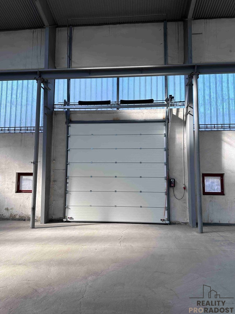 Pro vjezd do haly jsou osazená automatická sekční vrata o rozměru 4,2 x 4,2 metry.