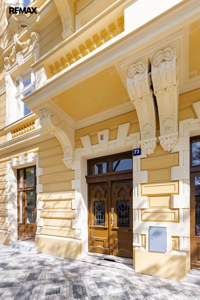 Nachází se ve 3. patře pečlivě zrekonstruovaného činžovního domu s výtahem, kde se podařilo zachovat původní architekturu a zároveň vytvořit moderní a komfortní bydlení. Vstup do domu je na kód, což zajišťuje vyšší úroveň bezpečnosti a pohodlí. Už společné prostory působí elegantně a podtrhují celkový prémiový charakter domu.