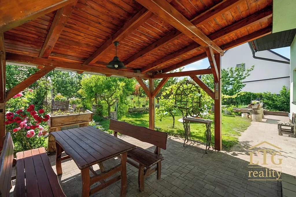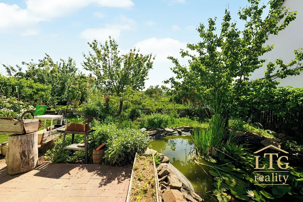 Pozemek o celkové výměře 722 m² (zastavěná plocha a nádvoří 207 m²) nabízí udržovanou zahradu s pergolou, vzrostlými ovocnými stromy i okrasnými dřevinami – prostor, který přirozeně kombinuje relaxaci i praktické využití. K dispozici je kopaná studna (8 m, vodní sloupec 1,5–2 m) vhodná pro závlahu a rovněž vrt o hloubce 36 m.