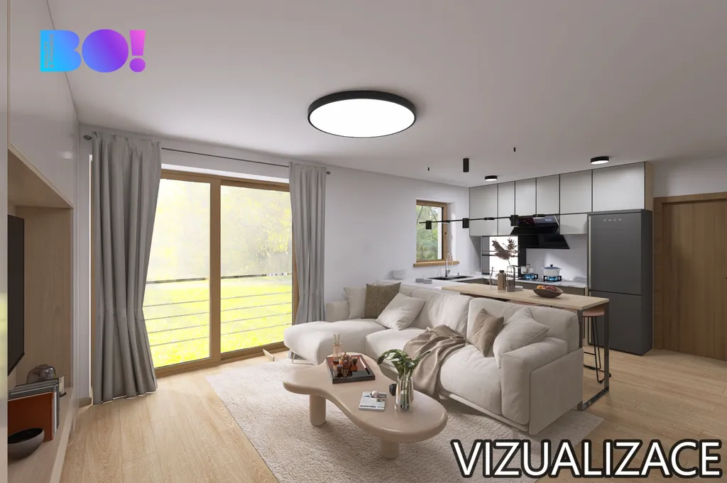 V přízemí se nachází dispozice 2+kk, která poskytuje pohodlné zázemí pro každodenní bydlení.