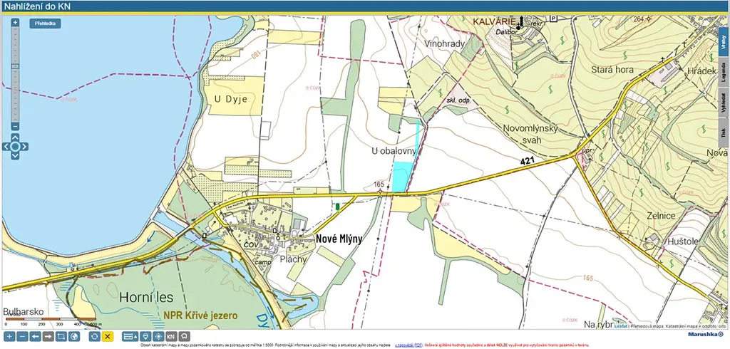Orná půda v k.ú. Nové Mlýny, ve dvou celcích celková výměra 20 134 m2, cena 80 Kč/m2, celkem 1.610.720,- Kč. Jedná se o pozemky zapsané na LV 573, k.ú. Nové Mlýny, p.č. 227/43 a 227/48. Pozemky jsou pronajaty pachtovní smlouvou s jednoletou výpovědní lhůtou.
