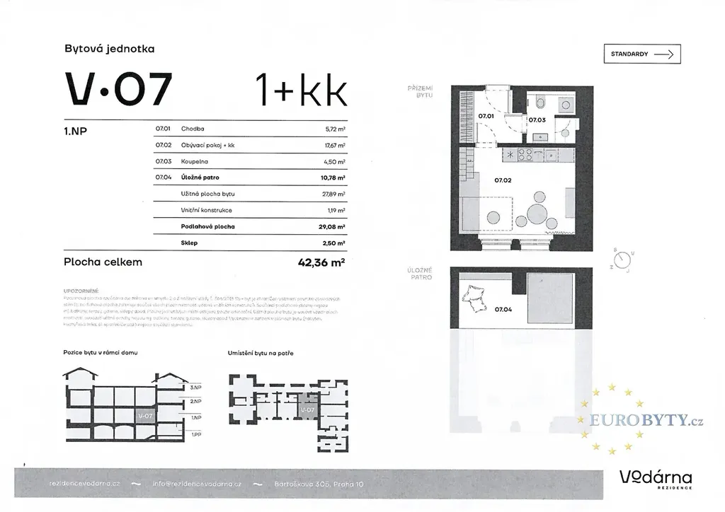 Dovolujeme si Vám s výhradním zastoupením vlastníka nabídnout k prodeji byt o velikosti 1+kk s mezonetovým patrem celkem40m2 ( sloužit může jako úložný prostor a ložnice ), v jedinečné rezidenci Vodárna na rozhraní Nuslí a Vršovic v ulici Bartoškova 3. Umístění bytu je v historické památkově chráněné budově nedaleko Vršovického nádraží s okny do ulice Bartoškova, která prošla totální renovací a výstavbou nových 16 ti bytů z nichž tento se nachází v prvním patře ze 2 s jihozápadní orientací do Bartoškovy ulice mezi krásné vzrostlé stromy. Byt je ve vysokém standardu vč. zařízení bytu jako je vybavená kuchyně, pračka, závěsy na oknech, postel, úložné prostory a vestavěná skříň atd. Každý detail všech bytových jednotek v rezidencevodarnacz byl pečlivě promyšlen s ohledem na estetiku a výjimečnost tohoto unikátního objektu s cílem vytvořit útulné a příjemné prostředí, které bude odrážet Vaši osobnost a styl. K bytu patří i velký sklep v přízemí domu. Lokalita je velice klidnou s veškerou potřebnou infrastrukturou v místě v dochozí vzdálenosti. Vlak 6 min na Hlavní nádraží a ve výstavbě i metro. Byt jako skvělá investice lze pronajmout reálně 202+ tis + poplatky.