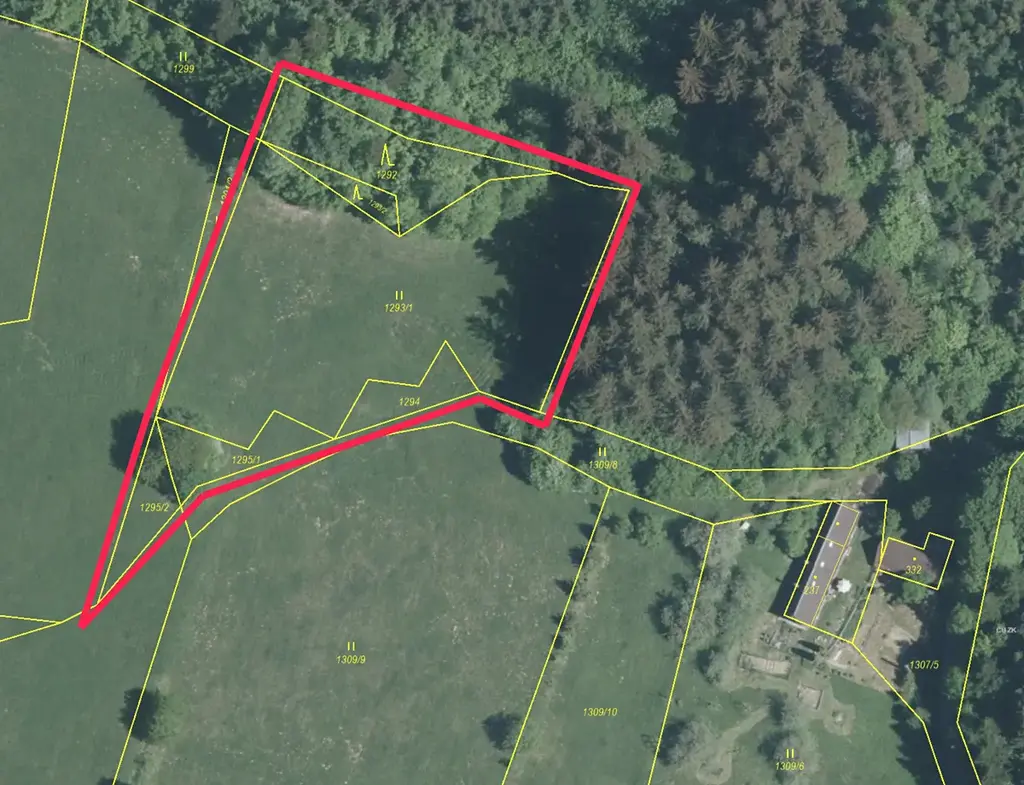 Prodáme pozemek, louku s porostem stromů v k.ú. Prlov, parc.č. 1293/1 a další.