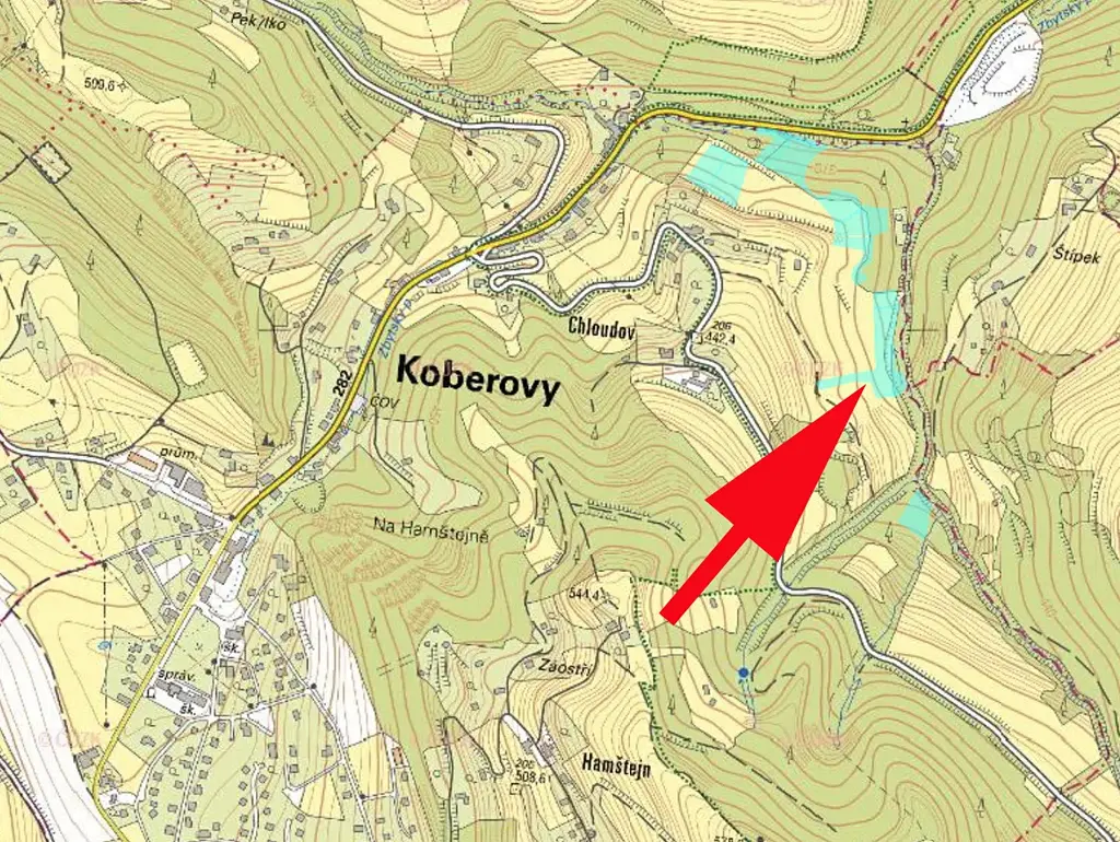 Prodáme pozemek, louku a les s porostem stromů (možno kácet) v k.ú. Koberovy, parc.č. 4520, 4525 a 4521