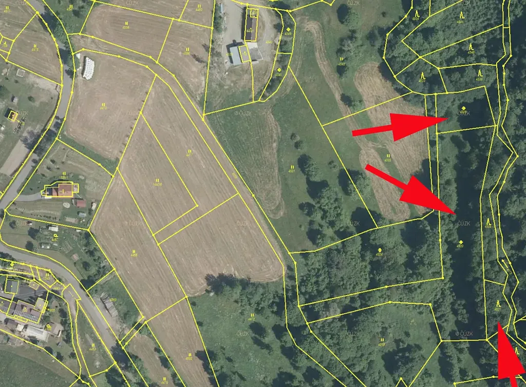 Pozemek přímo přiléhá k obecní cestě. Les možno případně prodat samostatně.