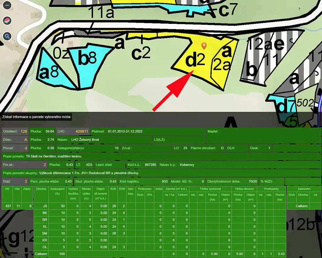 Stáří 22 let, ca 50% jasan, zbytek různé listnaté stromy (viz LHO na posledním obrázku)