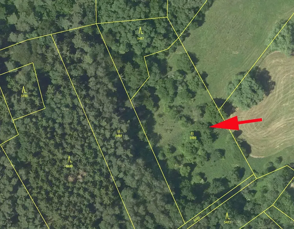 Prodáme pozemek, louku s několika stromy (zejm. borovice, možno kácet) v k.ú. Borotín u Boskovic, parc.č. 5486,