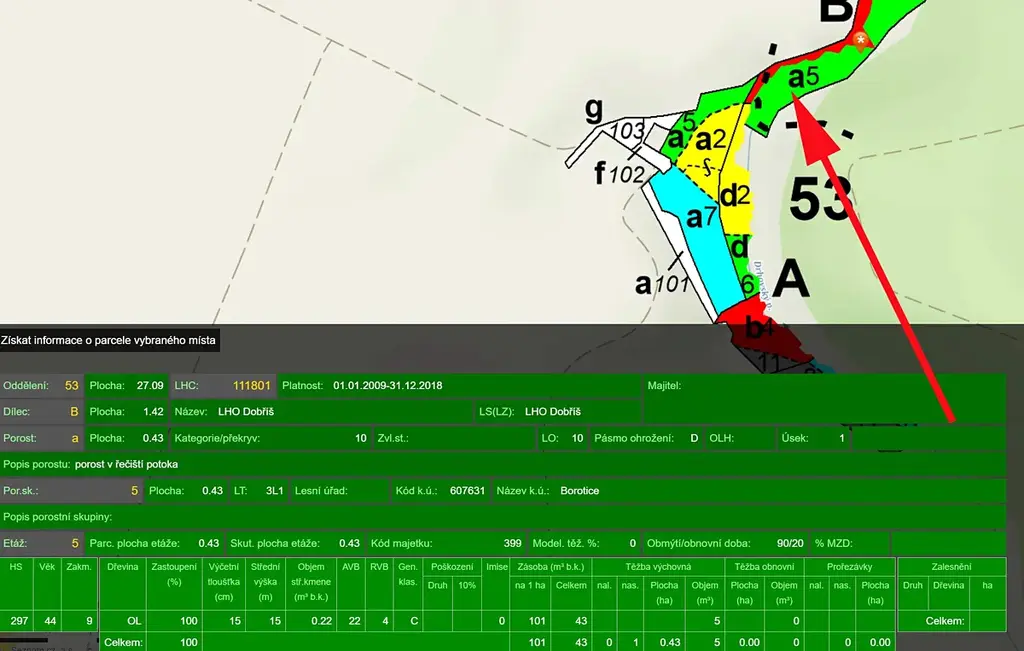 Prodáme pozemek - les blízko obce, v k.ú. Borotice, parcelní číslo 442.