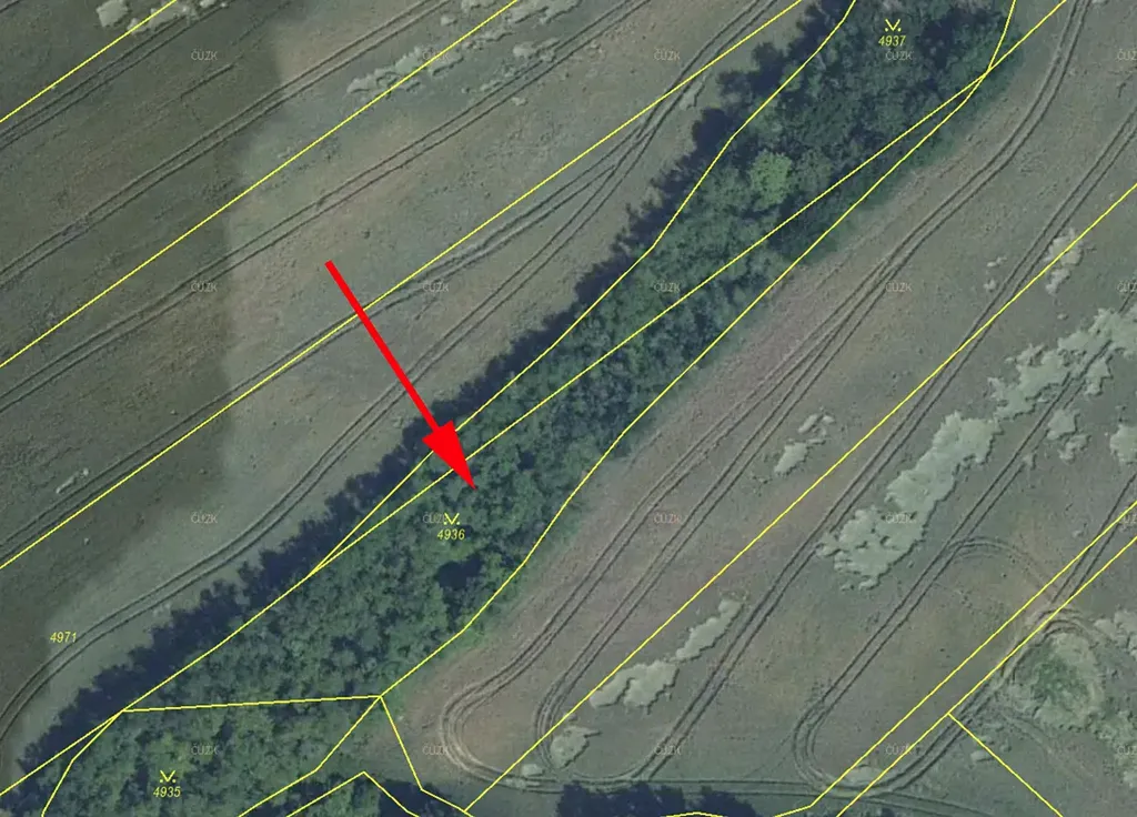 Prodáme pozemek, ostatní plochu s porostem stromů (možno vytěžit) v k.ú. Němčany, parc.č. 4936.