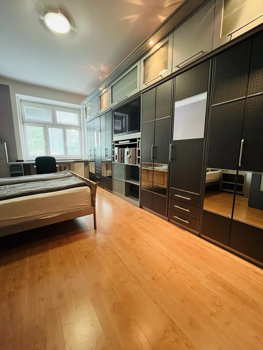 V jednom z neprůchozích pokojů najdeme kompletně vybavenou ložnici, od šatních skříní s manželskou postelí s rošty a matracemi, nočními stolky, osvětlením.