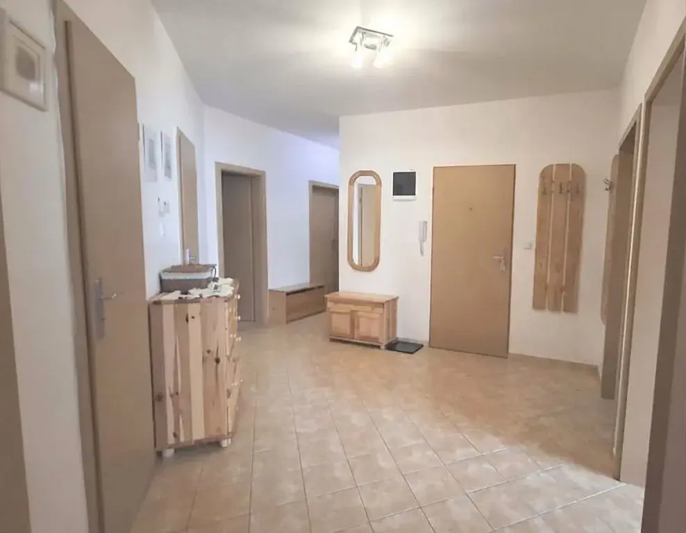 Byt se nachází v cihlovém domě, dokončeném v r. 2007, má celkovou plochu 130 m2, z toho 7,4 m2 je plocha balkonu. Byt disponuje dvěma koupelnami a 2 WC, velkým množstvím úložných prostorů, jako jsou 2 komory/šatny, vestavěné skříně v předsíni i v jedné z místností, dále k bytu náleží 2 sklepní místnosti a garážové stání v 1.PP domu. Jedna ze sklepních místností je přímo u garážového stání, je tedy vhodná zejména na uskladnění sezónních pneumatik , případně i motorky, mopedu, kol, ... .