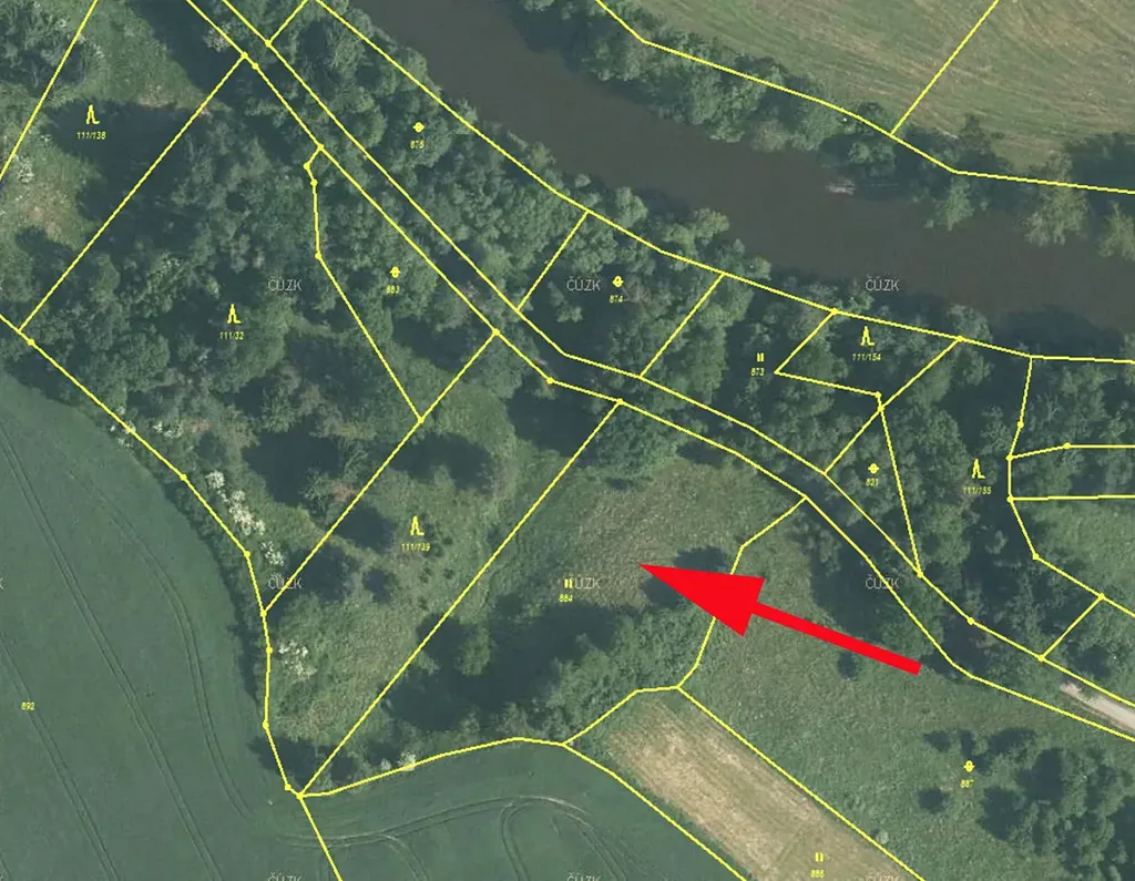 Prodáme pozemek, louku s několika stromy, lesní porost na nelesním pozemku (možno kácet snadněji, než v lese) v k.ú. Rájov, obec Zlatá Koruna, parc.č. 884