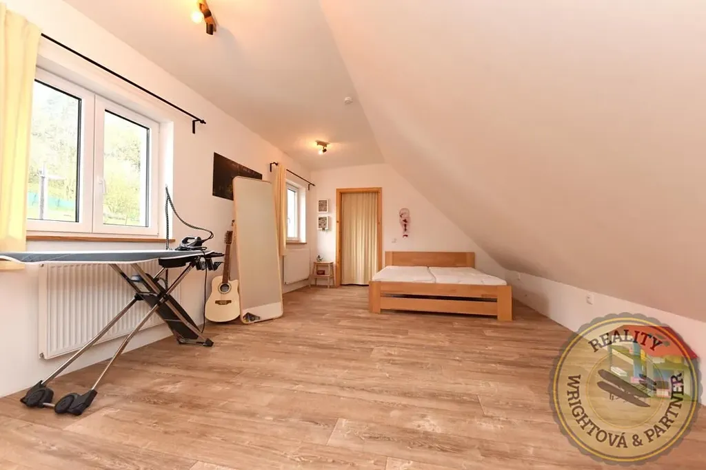 • Pozemek: Rozlehlá zahrada s krásným výhledem na okolní přírodní scenérie. Na pozemku se nachází původní hospodářské budovy (možnost přestavby či odstranění pro zvětšení pozemku), samostatně stojící garáž a nepoužívaná studna, kterou lze využít například na zalévání.