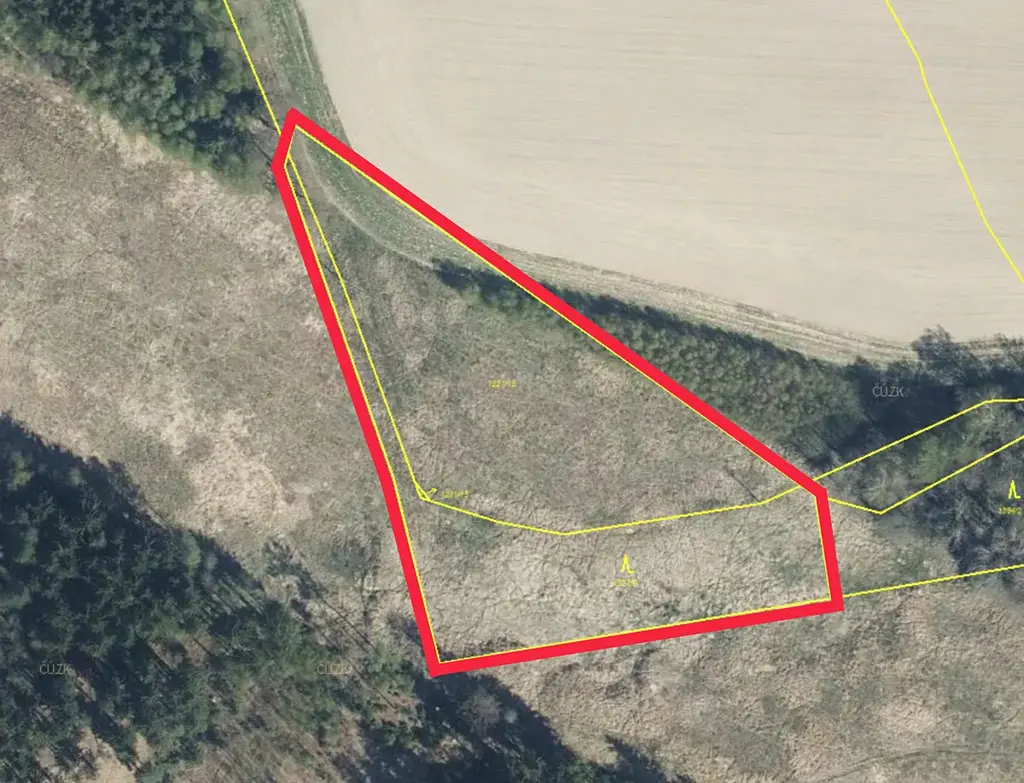 Prodáme ornou půdu a lesní pozemek bez porostu v k.ú. Semanín, parcely č. 1221/15 a 1321/9.