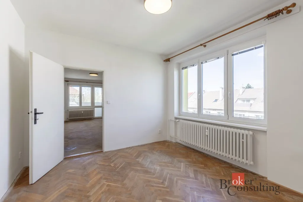 Interiér nabízí zachovalé dřevěné podlahy, které lze citlivě renovovat a dodat tak bytu jedinečný charakter. Zasklená lodžie poskytuje příjemný prostor pro relax po celý rok a prostorný sklep zajistí dostatek úložného místa.