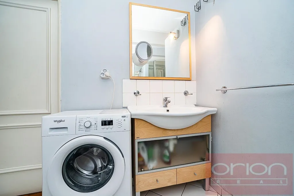 Byt o celkové ploše 122 m² nabízí vstupní halu, světlý a prostorný obývací pokoj propojený s jídelnou a plně vybavenou kuchyní, dvě ložnice (z nichž jedna má přímý vstup na balkon orientovaný do klidného vnitrobloku), koupelnu s vanou, sprchovým koutem, umyvadlem a toaletou, dále samostatnou toaletu a praktickou komoru.Standard bytu zahrnuje vysoké stropy, parketové podlahy v kombinaci s dlažbou a plynové vytápění. K vybavení patří vestavěné skříně v chodbě i ložnici, jídelní stůl se židlemi, postele, TV stolek s televizí a sedací souprava.
